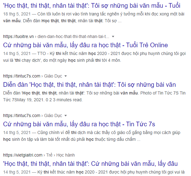 Còn trong trường hợp dưới, thì phải xem xét lại quá trình, với đầu vào và đầu ra. Không thể nói học một “mẫu” là học ‘giả’. Đó là một hành vi đáp ứng tiêu chí “học”, nên nếu bàn luận như vậy sẽ không hi vọng có giải pháp phù hợp. Thậm chí còn làm cho nhiều người hiểu sai, cho là “học thuộc” không phải là học.